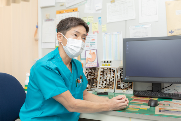 潰瘍性大腸炎の診断では、症状の経過や便の状態、腹痛の場所などを丁寧に確認したうえで、血液検査で炎症の強さや貧血の有無を調べます。